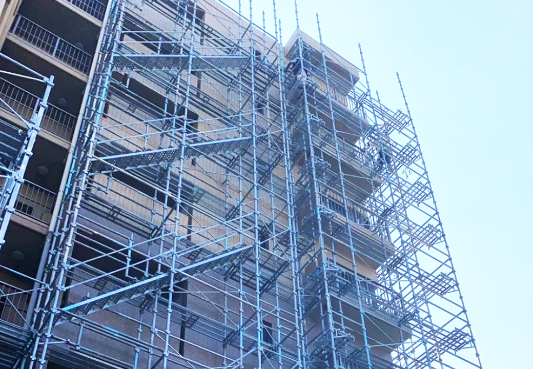 ビルやマンション、商業施設、公共施設、大型ショッピングセンター、個人住宅まで、豊富な実績をもとに各現場の条件に最適な足場工事を行います。